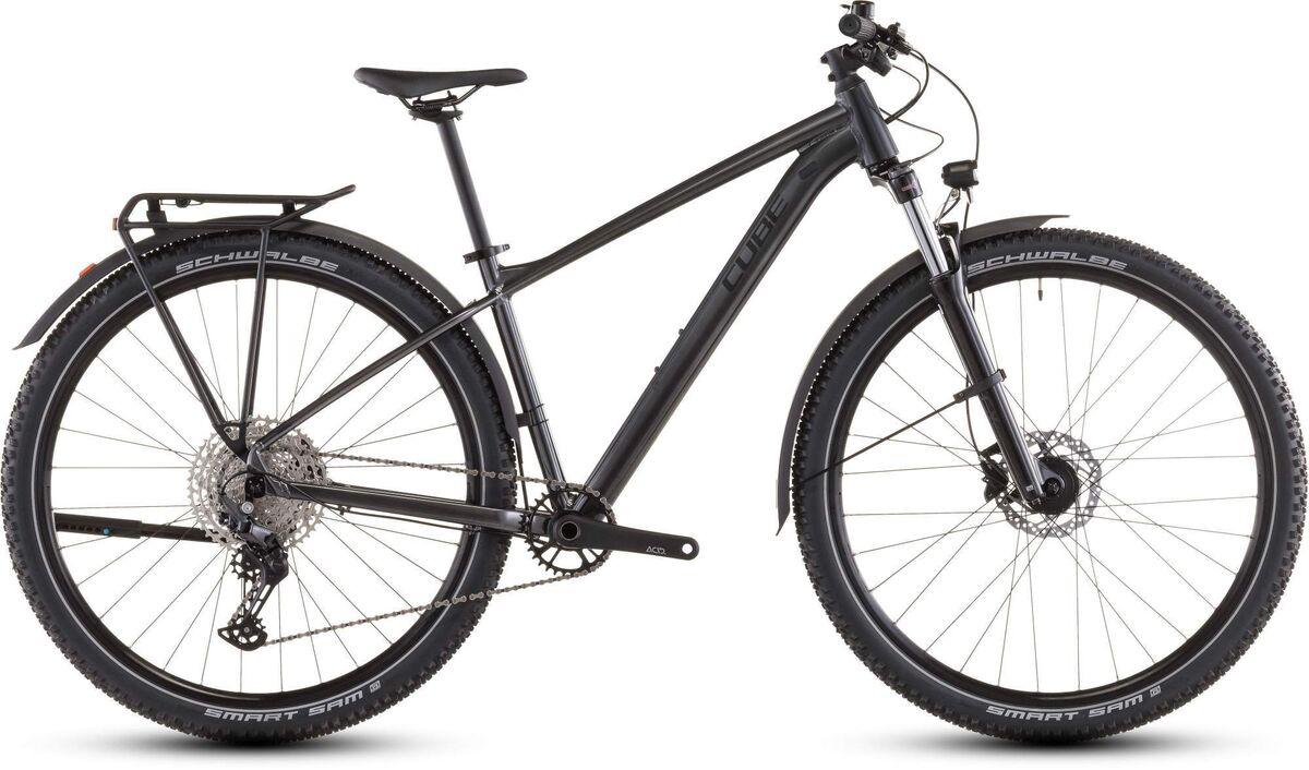 Product Can one bike really do it all? At CUBE we think the answer is "yes" - and you're looking at it. Mudguards a lighting system kickstand and versatile luggage carrier give you the tools you need to take on the weekday commute or a dash across town. Meanwhile the 100mm suspension fork Shimano Deore 1x12 gears Shimano hydraulic disc brakes and grippy Schwalbe 2.25in tyres are all you need to keep on riding when the tarmac ends. And our Size Split system means there's a perfectly proportioned Aim SLX FE for every rider. It's ready for anything.