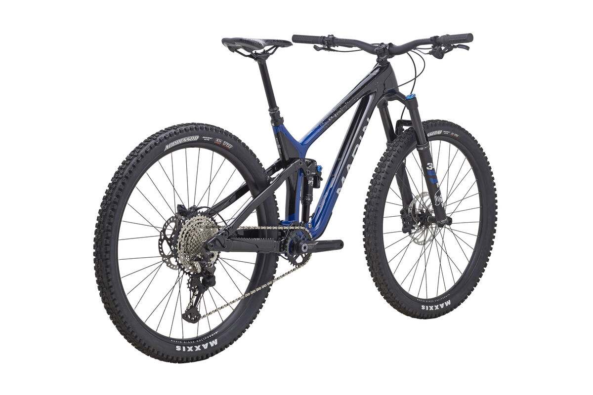 | Product | The Rift Zone is our most speed oriented MultiTrac bike, created for the rider looking for the speed and roll over capabilities of 29" wheels in a trail capable package. The Rift Zone represents the most modern 29" short travel trail bike possible featuring 125mm of MultiTrac suspension and progressive geometry that takes full advantage of decades of trail riding experience to create best-in-class handling, both in and out of the saddle. The Rift Zone is available with a carbon fiber or aluminum front triangle and is an ideal bike for mixing it up between long trail days in the saddle and fast weeknight group rides. Frame: All New Unidirectional Carbon Fiber Front Triangle, Series 4 Alloy Rear End, 29" Wheels, 140mm Travel, MultiTrac Suspension Platform, 148x12mm Boost Thru-Axle, 73mm Threaded BB w/ ISCG05 Tabs Rear Suspension: Fox Float X, Performance Series, EVOL Air Spring, Climb Switch, Rebound Adjustment, Custom Tune, 210x50mm, M8x30mm Top, M8x25mm Bottom Fork: Fox Performance 34 Float, 130mm Travel, 3-Position Micro Adjust Compression Adjustment, Rebound Adjustment, 110x15mm Kabolt Axle, 44mm Offset Headset: FSA No 42/47, Sealed Cartridge Bearings, 1 1/8" x 1 1/2" Stem: Marin CNC Stem, 35mm Length, 35mm Bar Bore Handlebar: Marin Trail Bar, 35mm Clamp, 7000 Alloy Bar, 800mm Length, 20mm Rise, 5 Degree Up, 8 Degree Back Grips: Marin Grizzly Lock On Brake Levers: TRP DH-R EVO Hydraulic Disk Brakes Brakes Front: TRP DH-R EVO 4-Piston Hydraulic Disc Brakes, 203mm 2.3mm Thick Rotor Brakes Rear: TRP DH-R EVO 4-Piston Hydraulic Disc Brakes, 180mm 2.3mm Thick Rotor Tires: Front: Maxxis Assegai 29x2.5" , 3C MaxxTerra, EXO, Tubeless Compatible Rear: Maxxis Aggressor 29x2.5" , 3C Maxx Terra, EXO, Tubeless Compatible Rim: Marin Aluminum Double Wall, 29mm Inner, Welded Joint, Disc Specific, Tubeless Compatible Hub Front: Shimano HF-MT410B, 110x15mm, Disc Hub Rear: Shimano HB-MT410B, 148x12mm, Disc, Microspline Freehub Body Spokes: 14g Black Stainless Steel Derailleur Rear: Shimano XT, 12-Speed, SGS Shift Lever: Shimano SLX 12-Speed, I-Spec EV Chain: KMC X-12 Silver and Black Cassette: Shimano SLX M7100, 12-Speed, 10-51T Crankset: FSA Gradient, Modular 1x, 32T Direct Mount Chainring, MegaTooth Technology, Mego EXO Spindle, Boost Spacing Bottom Bracket: MEGAEVO BB, 73mm BSA Threaded Pedals: - Saddle: Marin Speed Concept Seatpost: TranzX YSP23JL, 1x Remote, Size S 150mm Travel, Size M and L 170mm Travel, Size XL 200mm Travel, 30.9mm Extra1: Bolt-On 12mm Thru-Axle, 174mm Length, 1.0 Thread Pitch, 16.5mm, Tapered Head |