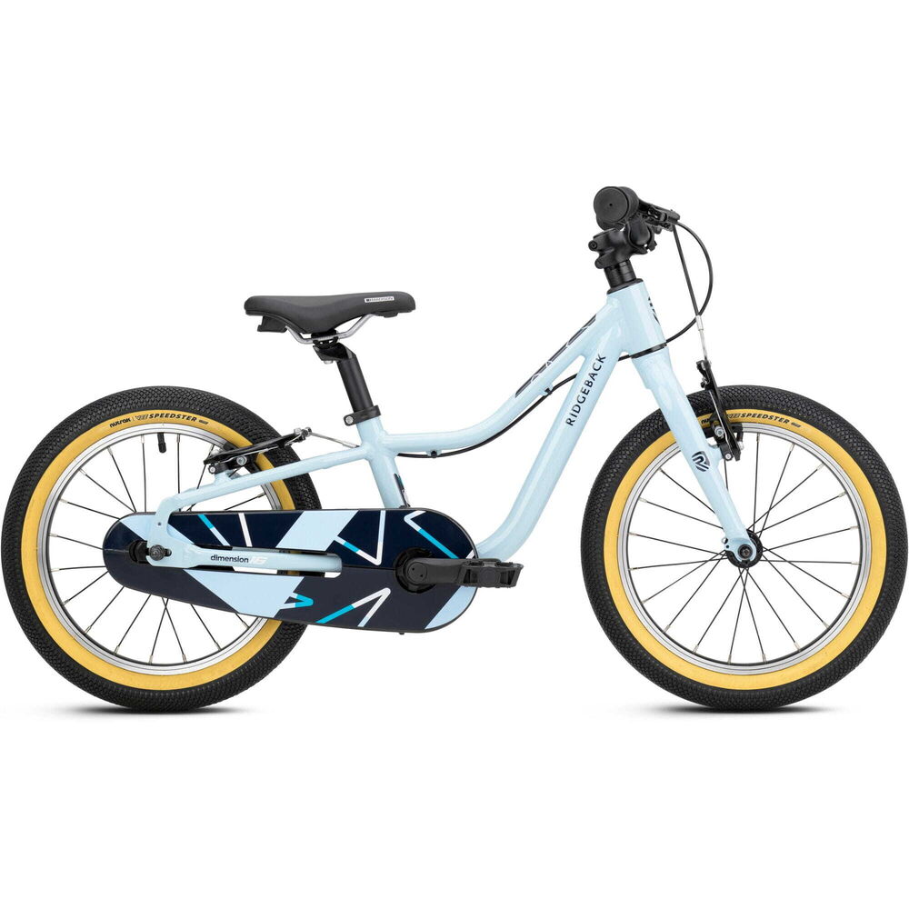 | Product | Dimension 16 - Lightweight Fun for Growing Riders Easy‐Pedal Cranks - Our pedal cranks are ergonomically correct, proportional to the child's leg length. They also place the pedals closer to the bike's centre so that children can pedal as smoothly and naturally as possible. Smaller Grips - Our handlebars and grips are narrower diameter so they fit small hands better, for confidence and control as well as better ability to reach the brakes safely. Faster Tyres ‐ Special edition Nutrak by Vee Speedsters with puncture resistantance. Lowered Frames - Our frames are lower where it counts, making it easier to get on and off and increasing clearance for greater confidence. Steering Limiter - To help prevent falls when learning to co‐ordinate pedalling and cornering, the steering has a limit stop that helps avoid an over‐steering situation. For young pedallers aged 3½ to 6 years old, the lightweight Dimension 16 is a compact package of fun that builds real riding confidence from the very first pedal stroke! Designed with a light aluminium frame, fork and parts, the Dimension 16 is that little bit easier to manage - making every ride smoother, easier and more enjoyable for your little one. Easy to adjust for a perfect fit as they grow, the Dimension 16 is built to keep up with your little rider every step of the way. A handy chain case keeps everything tucked neatly away - no messy chain, no fuss - while easy‐rolling tyres help young adventurers make smooth progress along paths and tracks with confidence. Ready to pedal? The Dimension 16 is ready when they are. |