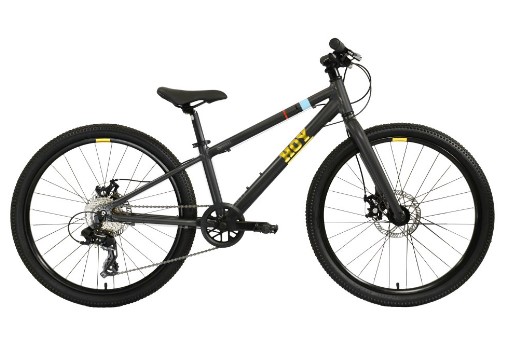 | Product | Designed in Great Britain / Inspired by Gold Inspired by a champion - " drawing on his Olympic gold-medal winning experience, Sir Chris Hoy has designed a range of bikes that bring pro-level performance to young riders. Engineered for confidence and control, HOY bikes are lightweight, responsive, and built to inspire the next generation of cyclists. Why choose a HOY bike? Lightweight Design - " HOY bikes are built with triple-butted aluminium frames and carefully selected components, ensuring a light yet strong ride for young cyclists. Ultimate Control & Safety - " All HOY junior bikes come equipped with powerful disc brakes, ensuring reliable stopping power in all conditions. Whether riding in the city or on light trails, these brakes give young riders the confidence and control they need to explore safely. Engineered for Children - " Designed with Sir Chris Hoy's experience in mind, these bikes deliver performance, control, and durability for young riders ready to push their limits. Built to Last - " We- ?re so confident in the quality of our bikes, we offer a free 10-year extended warranty on HOY frames and forks, providing peace of mind with every ride. Child-Focused Design - " Thoughtfully developed with child-specific geometry, optimised handlebar widths, and adjustable brake levers to provide the perfect fit and feel. The 24" HOY Pentland Bike - " Designed in Great Britain / Inspired by Gold The HOY Pentland 24" is the perfect next step for young riders aged 8 and over who are ready to take on longer rides and more varied terrain. Designed to be lightweight, responsive, and confidence-inspiring, this bike is a great companion for both city paths and light trails. Built around a durable and lightweight frame, the HOY Pentland 24" offers precise handling and stability. It features disc-specific wheels, internal cable routing for a cleaner look and better cable protection, wide handlebars for improved control, and wide treaded tyres that provide excellent grip across different surfaces. The Shimano 7-speed drivetrain, combined with a 32T chainring and 11-32T cassette, ensures smooth shifting and gives young riders a practical range of gears for hills, flats, and everything in between. 140mm crank arms are tailored to younger legs, supporting efficient pedalling. Powerful 160mm disc brakes deliver dependable stopping power in all weather and terrain. Designed with growth and comfort in mind, the HOY Pentland 24 includes a custom HOY saddle and a quick-release seatpost clamp, making it easy to adjust as your child grows. With subtle styling and premium features, it- ?s built for young cyclists who want to go further with confidence. Sizing The 24" HOY Pentland bike is recommended for children aged 8+, with a minimum inside leg measurement of 57cm, and a minimum height of 127cm (4'2"). Frame- Lightweight 6061 triple butted T6 alloy frame, Disc mounts Fork- Lightweight full alloy fork, Disc mounts Headset- 1.1/8" threadless ahead Handlebar- Alloy riser bar, 580mm wide, 30mm rise, 10 degree backsweep Stem- Alloy ahead stem, 50mm extension, Hoy branded top cap Grips- Dual density comfort grips Gear Shifters- Shimano SL-M310 Rapidfire Plus, 8 speed Rear Derailleur- Shimano Tourney RD-TX800, 8 speed Freewheel- Shimano HG-41 cassette, 11-32T, 8 speed Chainwheel- 32T chainring, 140mm alloy cranks Bottom Bracket- Sealed cartridge Brakes- Tektro MD-280 mechanical disc brakes, 160mm disc Brake Levers- Tektro alloy brake levers, Junior specific with reach adjust Pedals- Junior platform pedals, 9/16" Front Hub- Alloy 28 hole with quick release Rear Hub- Alloy 28 hole with quick release, Cassette mount Rims- Double wall alloy, Disc specific, 28 hole Spokes- 14G Tyres- Lightweight junior tyres, 24x1.95- ? Saddle- Hoy junior saddle Seat Post- Alloy micro adjust, 27.2mm x 300mm Accessories- Ping bell and double plastic chainguard |