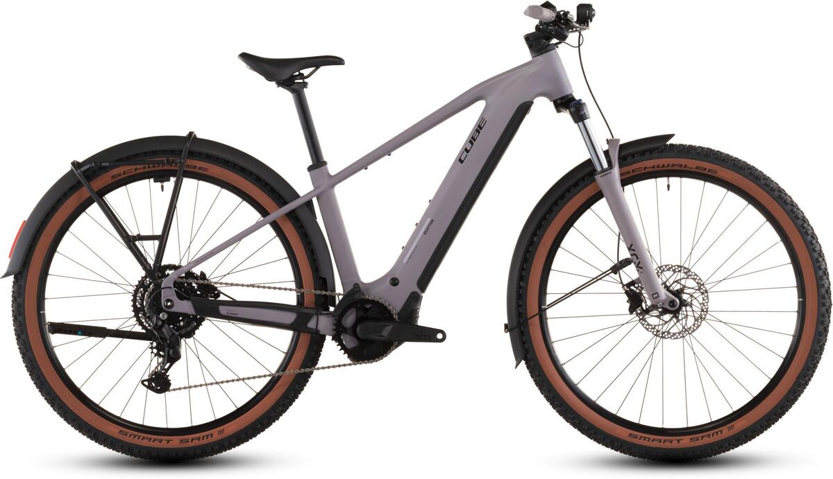 | Product | 1980s cycle couriers adopted the mountain bike for the urban jungle with good reason - and we've channelled that spirit of versatility into the Reaction Hybrid Performance FE. Bosch's powerful Performance motor - with a 600Wh battery - and easy-shifting Shimano Cues 9-speed gears keep you moving and powerful Shimano hydraulic disc brakes ensure you can always stop safely whatever the weather. There's a suspension fork with 120mm travel (100mm for smaller frame sizes) for tackling city potholes and rooty trails grippy Schwalbe Smart Sam 2.6in tyres and a comfy saddle and grips for day-long comfort. Fully equipped with mudguards integrated lights a luggage carrier and a kickstand it's all set for adventure - anytime anywhere. The Reaction Hybrid Performance FE is built for all-round versatility whether you're tackling the daily commute or peaceful forest trails. Bosch's quiet powerful Performance motor with 75 Nm torque is Smart System-equipped and there's a 600Wh battery for miles of pedal assistance. We fitted mudguards a luggage carrier a lighting set and a flat mount kickstand so you're all set for any journey. There's even mounting points for a lock or multi-tool under the top tube while Internal Cable Routing reduces clutter and flatters the frame's elegant lines. And with Size Split it's easy to find the perfect fit for you. Frame: Aluminium Superlite Gravity Casting Technology Agile Ride Geometry Boost148 Fully Integrated Battery Advanced Internal Cable Routing 1.5 Headtube Kickstand/Fender/Carrier Mounting Points Fork: SR Suntour XCM34 NLO Coil Tapered 15x110mm 120mm (27.5: 100mm) Headset: ACROS AZF-1034 ICR (Integrated Cable Routing) Top Zero-Stack 1 1/2" (ZS 56mm) Bottom Zero-Stack 1 1/2" (ZS 56mm) X-Connect Interface Stem: CUBE Performance Stem E-MTB 35 FPI-Link Handlebar: CUBE Rise Trail Bar 35 Grips: ACID Hybrid Perform Rear derailleur: Shimano Cues RD-U4000-GS 9-Speed Chain guide: Reverse Flip-Guide E-Chain Guide Direct Mount I-Plate Shifters: Shimano Cues SL-U4010- Rapidfire-Plus Brake system: Shimano BR-MT200 Hydr. Disc Brake (180) Crankset: ACID MTB Hybrid Pro 38T Crankset chainring sizes: 38T Cassette: Shimano Cues CS-LG300 11-46T Number of gears: 9 Chain: KMC eGlide Wheelset (system wheels): ACID Pro 30 32/32 Spokes 15x110mm/12x148mm Tubeless Ready Tires: Schwalbe Smart Sam Active 2.6 Pedals: ACID PP Trekking Saddle: ACID Sequence 160 Seat post: CUBE Performance Post 31.6mm Front light: ACID Front Light PRO-E 150 X-Connect 12V DC Rear light: ACID Mudguard Rear Light PRO-E 12V DC Kickstand: ACID FM Pure Kickstand Mudguard: ACID 85 BB-Mount Bell: Knog Oi Carrier: ACID Carrier SIC 2.0 Rail Boost Engine: Bosch Drive Unit Performance Line 75Nm (BDU34) Battery: Bosch PowerTube 600 Charger: Bosch 2A Remote: Bosch Purion 200 with Integrated Display |