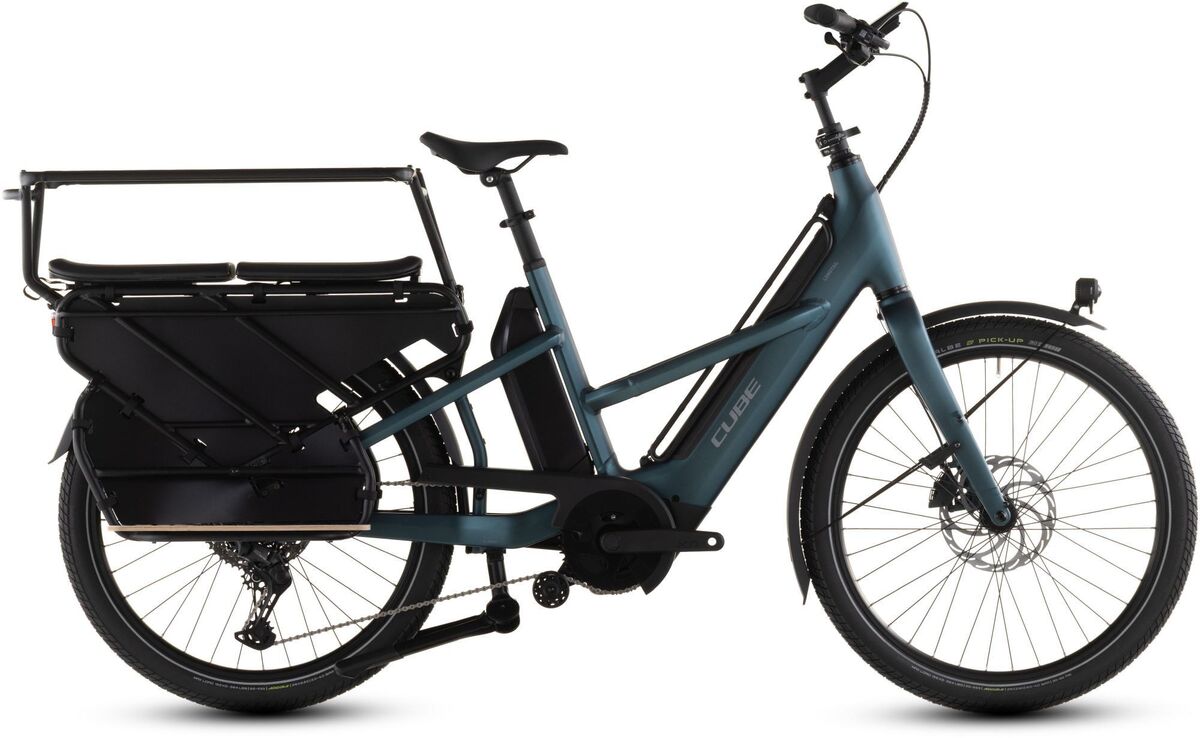 | Product | What makes the Longtail Hybrid Family so adaptable is its strong versatile rear carrier. Fully equipped with a comfortable seat stepping board foot rests and side protectors it's ready to transport your kids safely to wherever they need to be. Wide-ranging Shimano Cues 11-speed gears work with Bosch's powerful Cargo Line motor and an 800Wh battery to make light work of any journey. Thanks to its telescopic seatpost and Speedlifter stem it's easy for both mums and dads to tweak it to fit in just a few seconds. The 200kg load capacity means you can be sure it's up to the task and with a few easily swapped optional accessories it can even serve double duty as a cargo hauler. With the included full-length mudguards lighting set and twin-leg kickstand it's got everything you need for family adventures right out of the box. Frame description The secret to our Longtail's carrying capacity is the sturdy adaptable rear carrier system. With the Longtail Hybrid 800 Family it comes ready equipped with a comfortable bench seat side protection and stepboard - so your children have a comfortable and safe place to sit. And with a carrying capacity of up to 200kg you can be sure that it's up to the job. With the 800Wh battery powering the smooth powerful Bosch Cargo Line drive it's got miles of smooth pedal assistance on tap. And with various cargo-carrying accessories easily swappable with the seat set-up it can serve double duty as a load hauler. One bike many reasons. The secret to our Longtail's carrying capacity is the sturdy adaptable rear carrier system. With the Longtail Hybrid 800 Family it comes ready equipped with a comfortable bench seat side protection and stepboard - so your children have a comfortable and safe place to sit. And with a carrying capacity of up to 200kg you can be sure that it's up to the job. With the 800Wh battery powering the smooth powerful Bosch Cargo Line drive it's got miles of smooth pedal assistance on tap. And with various cargo-carrying accessories easily swappable with the seat set-up it can serve double duty as a load hauler. One bike many reasons. Frame: Aluminium Casting Comfort Ride Geometry Oversized Headtube Premium Durability And Safety Suspended Carrier Downtube Carrier Fork: Aluminium Rigid Fork 26" Headset: ACROS Carrier Mount Headset Stem: BySchulz Speedlifter Classic Handlebar: CUBE Comfort Trail Bar 700mm Grips: ACID Travel Comfort Rear derailleur: Shimano Cues RD-U6000-GS 11-Speed Shifters: Shimano Cues SL-U6000 Rapidfire-Plus Brake system: Magura Gustav PRO Front 4-Piston/Rear 4-Piston Hydr. Disc Brake (203/203) Crankset: ACID Trekking Hybrid 44T Crankset chainring sizes: 44T Cassette: Shimano Cues CS-LG400 11-50T Number of gears: 11 Chain: KMC eGlide Wheelset (system wheels): ACID SLX 35 36/36 Spokes 15x110mm/12x148mm Disc Tubeless Ready Tires: Schwalbe Pick-Up Performance Super Defense 65-559 Pedals: ACID PP Trekking Saddle: ACID Sequence Pro Plus Seat post: Satori Sorata 349mm 280mm -440mm telescoping seatpost Seat post = dropper Yes/No: NO Front light: ACID Front Light PRO-E 150 12V DC Rear light: Herrmans H-Trace 6-12V DC Kickstand: Ursus Jumbo Evo Mudguard: ACID 75 BB-Mount Bell: Knog Oi Engine: Bosch Drive Unit Cargo Line 85Nm (BDU37) Battery: Bosch PowerPack 800 Charger: Bosch 4A Remote: Bosch LED Remote Display: Bosch Kiox 500 |