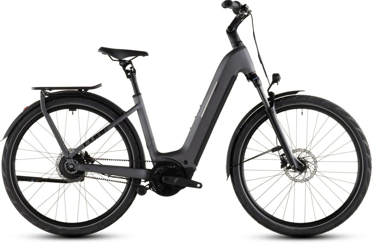 | Product | Under its clean elegant lines the Kathmandu Hybrid Comfort Pro by CUBE has some really clever stuff going on. The Enviolo hub gear is stepless for starters. That means you just twist until you're comfortable - no such thing as the "wrong" gear. It's also belt-driven which means no more oily chain. The Bosch CX drive provides up to 90Nm of pedal assistance making any route - even hilly ones - a breeze. With its 800Wh PowerTube battery you've no range worries either. Strong Shimano hydraulic disc brakes work reliably in all weathers and there's a Suntour air suspension fork adjustable stem and parallelogram seatpost. Add the Integrated Carrier 3.0 and a full range of accessories and you're all set. Frame description The Kathmandu Hybrid's Easy Entry frame is designed to do exactly what it says making adventurous cycling as accessible and straightforward as possible. The neatly housed Bosch CX drive and 800Wh PowerTube battery are just the start. Efficient Comfort Geometry is designed around a 100mm travel suspension fork for better control even when the going gets rough. Integrated cables complement the frame's clean lines while a UDH dropout is tough versatile and future-proof. And of course there's an integrated chain guard mount and our tough sturdy and exceptionally neat Integrated Carrier 3.0 so you can carry everything you need for your adventures. The Kathmandu Hybrid's Easy Entry frame is designed to do exactly what it says making adventurous cycling as accessible and straightforward as possible. The neatly housed Bosch CX drive and 800Wh PowerTube battery are just the start. Efficient Comfort Geometry is designed around a 100mm travel suspension fork for better control even when the going gets rough. Integrated cables complement the frame's clean lines while a UDH dropout is tough versatile and future-proof. And of course there's an integrated chain guard mount and our tough sturdy and exceptionally neat Integrated Carrier 3.0 so you can carry everything you need for your adventures. Frame: Aluminium Superlite Gravity Casting Technology Efficient Comfort Geometry Fully Integrated Battery Integrated Carrier 3.0 Advanced Internal Cable Routing Integrated Seatclamp Fork: SR Suntour NX1-32 LO Air Tapered 15x110mm 100mm Headset: ACROS AZF-1035 ICR (Integrated Cable Routing) Top Zero-Stack 1 1/2" (ZS 56mm) Bottom Zero-Stack 1 1/2" (ZS 56mm) HIC Stem: CUBE Comfort Stem Pro 31.8mm Adjustable Handlebar: CUBE Comfort Trail Bar 700mm Grips: ACID Travel Comfort Gripshift Shifters: Enviolo MC-TWIST Brake system: Shimano BR-MT200 Hydr. Disc Brake (180) Crankset: ACID MTB Hybrid Pro 50T Crankset chainring sizes: 50T Cassette: Gates Rear Sprocket E9 CDX 24T Number of gears: 999 Belt: Gates CDX 128T Rims: ACID SLX 25 32H Disc Tubeless Ready Front hub: ACID SLX 15mm Boost 6-Bolt Rear hub: Enviolo Trekking 380% 6-Bolt 135mm Tires: Schwalbe Marathon Efficiency PerfL 55-622 Pedals: ACID PP Trekking Saddle: ACID Shen Pro Seat post: SR Suntour NVX 31.6mm Seat post = dropper Yes/No: NO Front light: ACID Front Light PRO-E 150 X-Connect 12V DC Rear light: ACID Mudguard Rear Light PRO-E 12V DC Kickstand: ACID FM Pure Kickstand Mudguard: ACID 65 Integrated Carrier 3.0 Bell: Reich Cycle Bells Ringsound Carrier: ACID Integrated Carrier 3.0 CUBE Adapter Compatible Engine: Bosch Drive Unit Performance Line CX max. 90Nm (BDU38) Battery: Bosch PowerTube 800 Charger: Bosch 2A Remote: Bosch Purion 200 with Integrated Display |