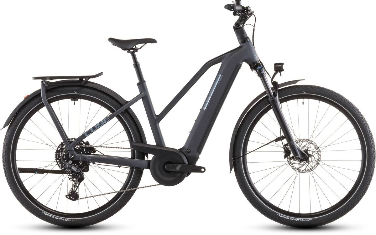 | Product | Adventure is what you make it - and the Kathmandu Hybrid ONE from CUBE will make any pedal-powered adventure better. With its 800Wh PowerTube battery and Bosch CX drive there's up to 85 Nm of pedalling assistance at your disposal. Combined with the easy shifting and wide range of Shimano's Cues 1x10 gears it's more than enough to take on any route with ease. The Suntour air suspension fork suspension seatpost and adjustable stem are all there to make even long days in the saddle enjoyable. Strong dependable Shimano hydraulic disc brakes give you safe stopping in all weathers. And a full complement of accessories including lights and mudguards to accompany our Integrated Carrier 3.0 means you're ready for anything. You'll instantly recognise CUBE's Kathmandu Hybrid as a piece of timelessly elegant bicycle design but it's stuffed full of innovation and clever touches. The neatly housed Bosch CX drive and 800Wh PowerTube battery are just the start. Efficient Comfort Geometry is designed around a 100mm travel suspension fork for better control even when the going gets rough. Integrated cables complement the frame's clean lines while a UDH dropout is tough versatile and future-proof. And of course there's an integrated chain guard mount and our tough sturdy and exceptionally neat Integrated Carrier 3.0 so you can carry everything you need for your adventures. Frame: Aluminium Superlite Gravity Casting Technology Efficient Comfort Geometry Boost148 UDHTM Fully Integrated Battery IC 3.0 Advanced Internal Cable Routing Integrated Seatclamp Fork: SR Suntour NX1-32 LO Air Tapered 15x110mm 100mm Headset: ACROS AZF-1035 ICR (Integrated Cable Routing) Top Zero-Stack 1 1/2" (ZS 56mm) Bottom Zero-Stack 1 1/2" (ZS 56mm) HIC Stem: CUBE Comfort Stem Pro 31.8mm Adjustable Handlebar: CUBE Comfort Trail Bar 700mm Grips: ACID Travel Comfort Rear derailleur: Shimano Cues RD-U6000-GS 10-Speed Shifters: Shimano Cues SL-U6000 Rapidfire-Plus Brake system: Shimano BR-MT200 Hydr. Disc Brake (180) Crankset: ACID MTB Hybrid Pro 40T Crankset chainring sizes: 40T Cassette: Shimano Cues CS-LG300 11-48T Number of gears: 10 Chain: KMC eGlide Wheelset (system wheels): ACID Pro 25 32/32 Spokes 15x110mm/12x148mm Tubeless Ready Tires: Schwalbe Motion Big Apple PerfL 55-622 Pedals: ACID PP Trekking Saddle: ACID Sequence 180 Seat post: CUBE Suspension Seatpost HD 31.6mm Front light: ACID Front Light PRO-E 60 X-Connect 12V DC Rear light: ACID Mudguard Rear Light PRO-E 12V DC Kickstand: ACID FM Pure Kickstand Mudguard: ACID 65 Integrated Carrier 3.0 Bell: Easy Bell Carrier: ACID Integrated Carrier 3.0 CUBE Adapter Compatible Engine: Bosch Drive Unit Performance Line CX max. 100Nm (BDU38) Battery: Bosch PowerTube 800 Charger: Bosch 2A Remote: Bosch Purion 200 with Integrated Display |